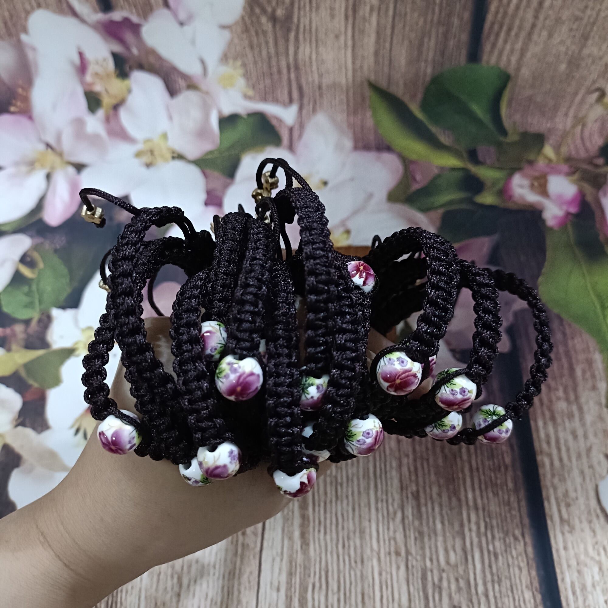 Vòng tay HandMade chỉ đỏ may mắn đính đá hoa nhiều màu